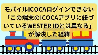 久しぶりに「モバイルICOCA」にログインしようとしたら、以下のメッセージが出てしまいログインできない事象に遭遇した。この端末のICOCAアプリに紐づいているWESTER IDとは異なるIDでログインしようとしています。ICOCAアプリと紐...