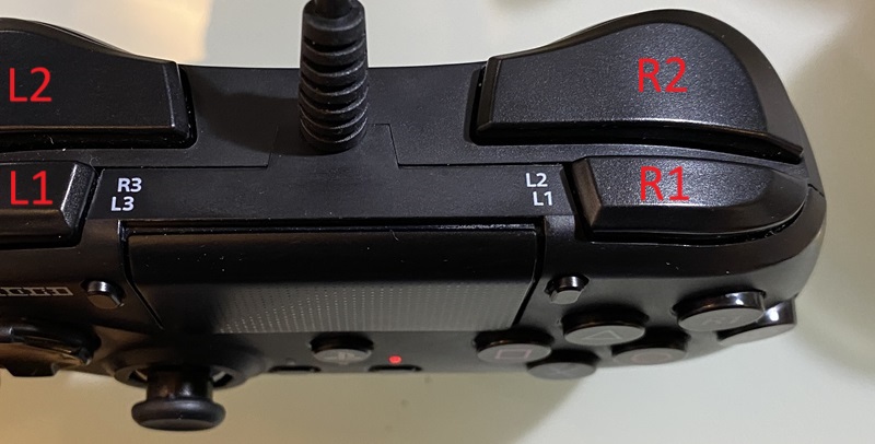 記事冒頭の画像のとおり「R1」は「△」ボタンの右隣にあるため、人差し指で押すところのボタンには「R1」でなく「L1」が設定されています。