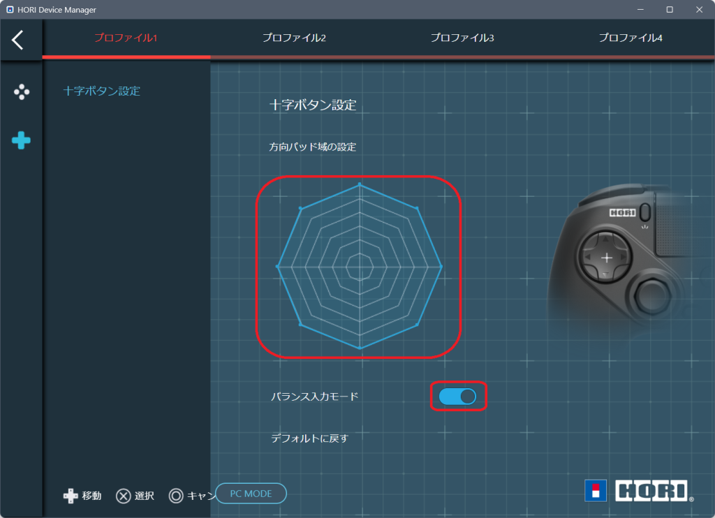 感度設定を変更することによって何が変わるのか、それはどのくらいの強さで十字キーを押し込んだら反応するかという、押し込み強度の反応感度です。