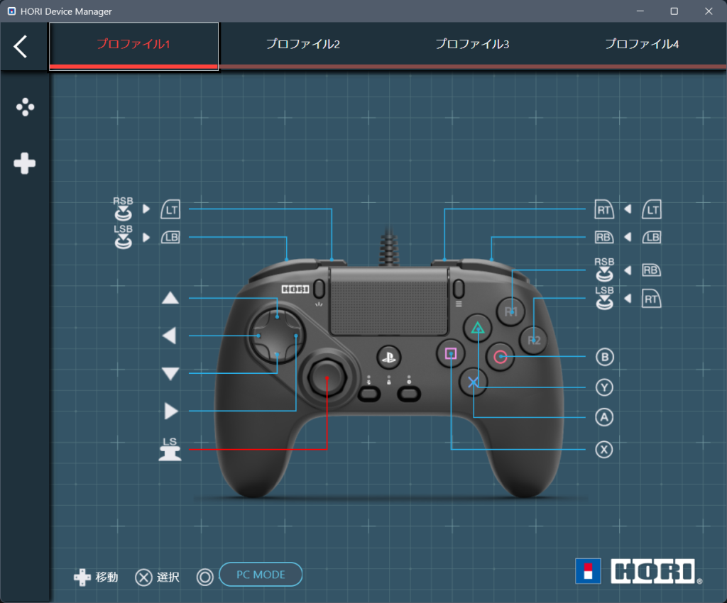 このコントローラはキーの割り当てを専用ソフトを使って再割り当てすることができます。